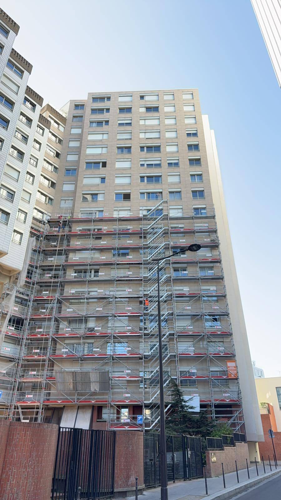 Installation d’un bardage sur la façade d’un immeuble situé à Paris 14. Les travaux ont consisté à poser un revêtement extérieur technique et esthétique, assurant à la fois une meilleure protection contre les intempéries et une amélioration de la performance thermique du bâtiment.